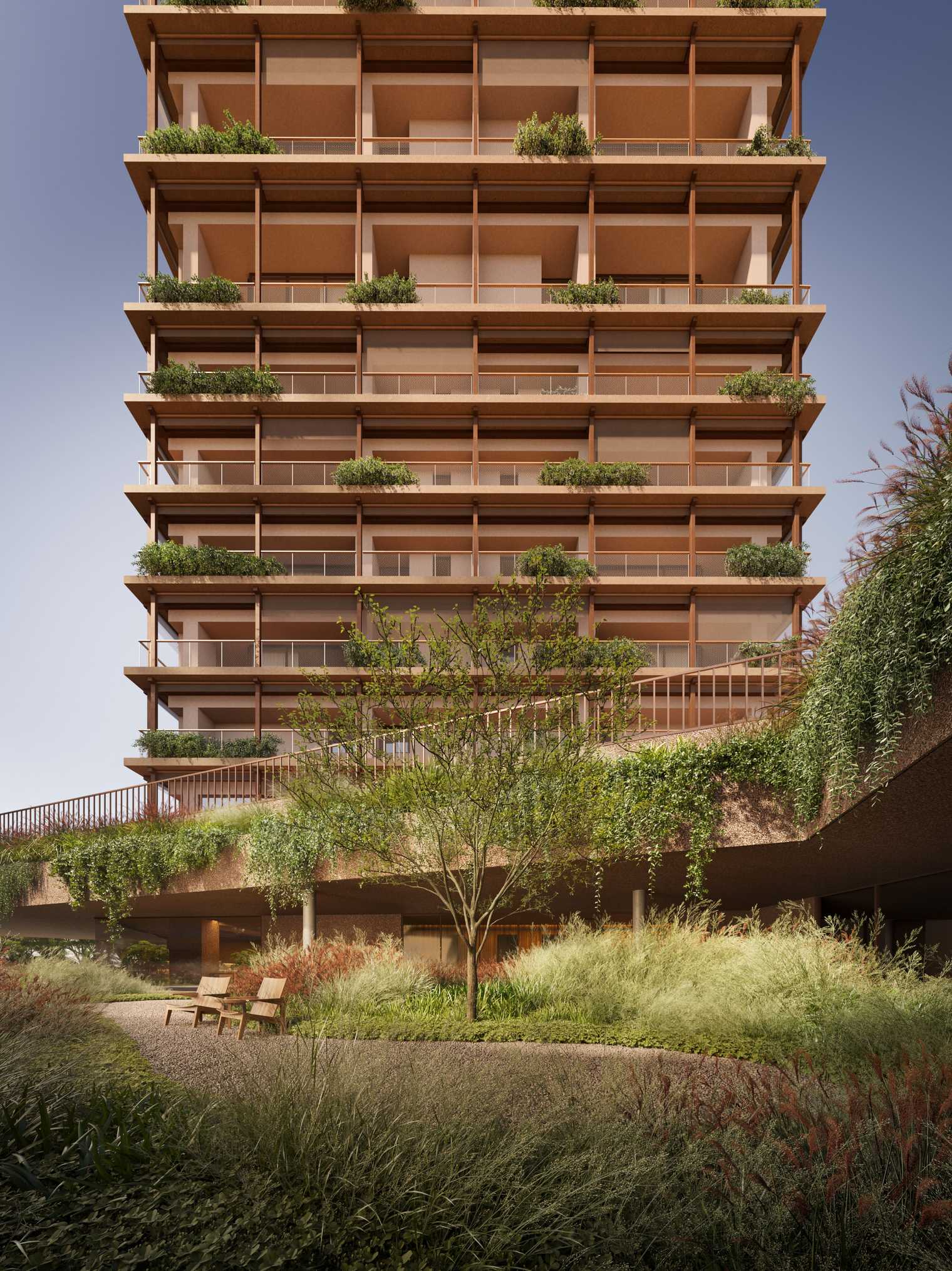 Não é diferente com o DAMATA: a torre residencial eleva-se de forma angulada para garantir uma vista ampliada de todo o verde do Jardim Europa e as plantas dos apartamentos dispõem de um núcleo central com áreas de serviço, entradas e halls que organiza todos os cômodos principais ao seu redor, privilegiando ainda mais a contemplação da paisagem verde pelo morador.